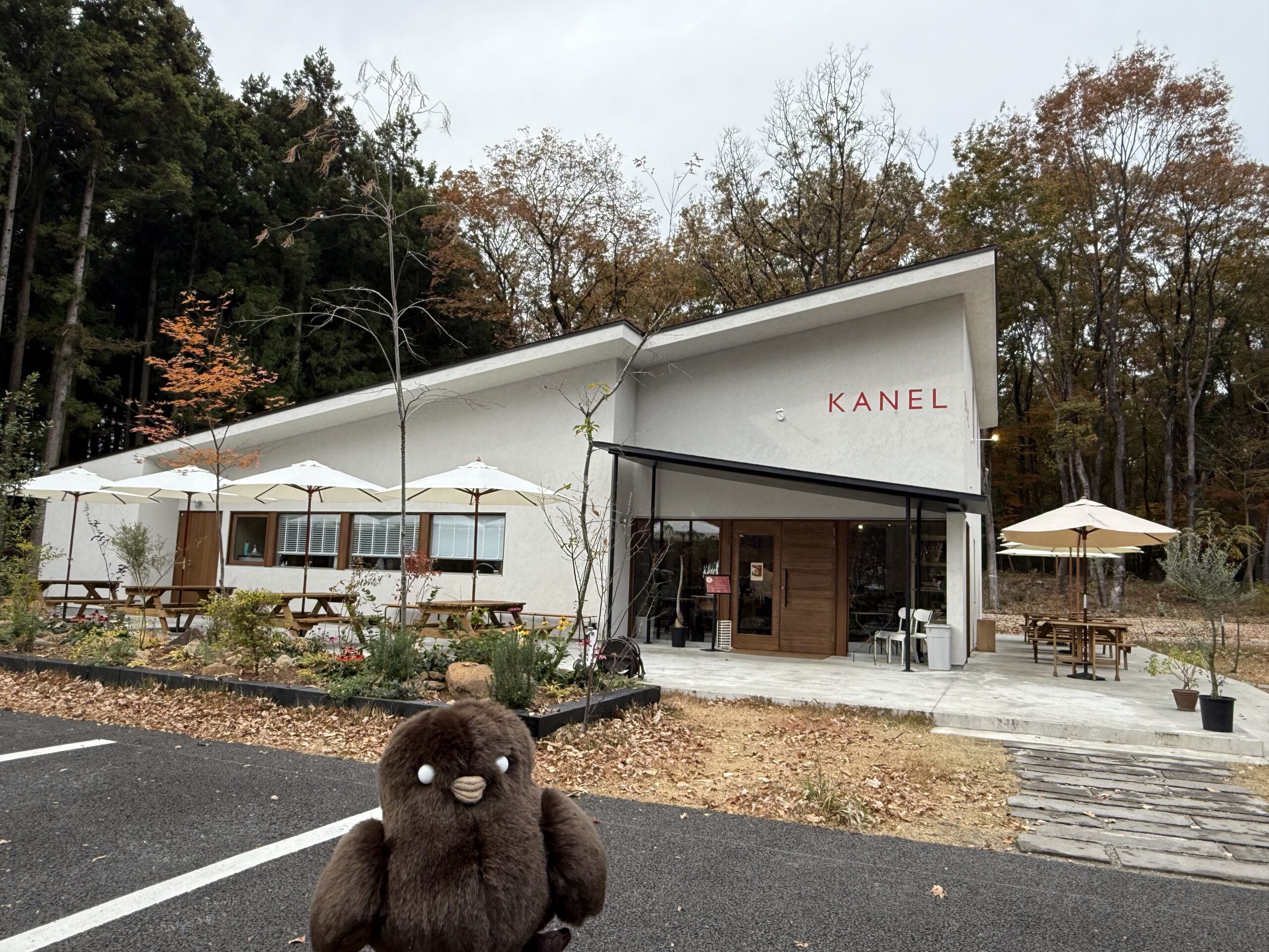 那須店は、白い外壁に赤い「KANEL」の文字が映える、とても可愛らしい建物。