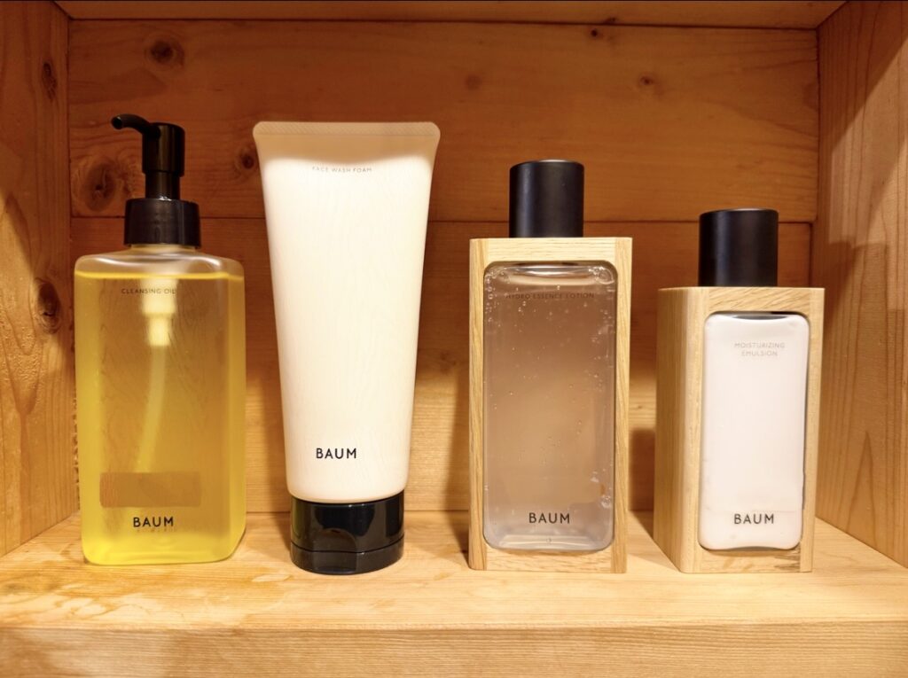 洗面スペースには、BAUM(バウム)のスキンケアラインをご用意しました。