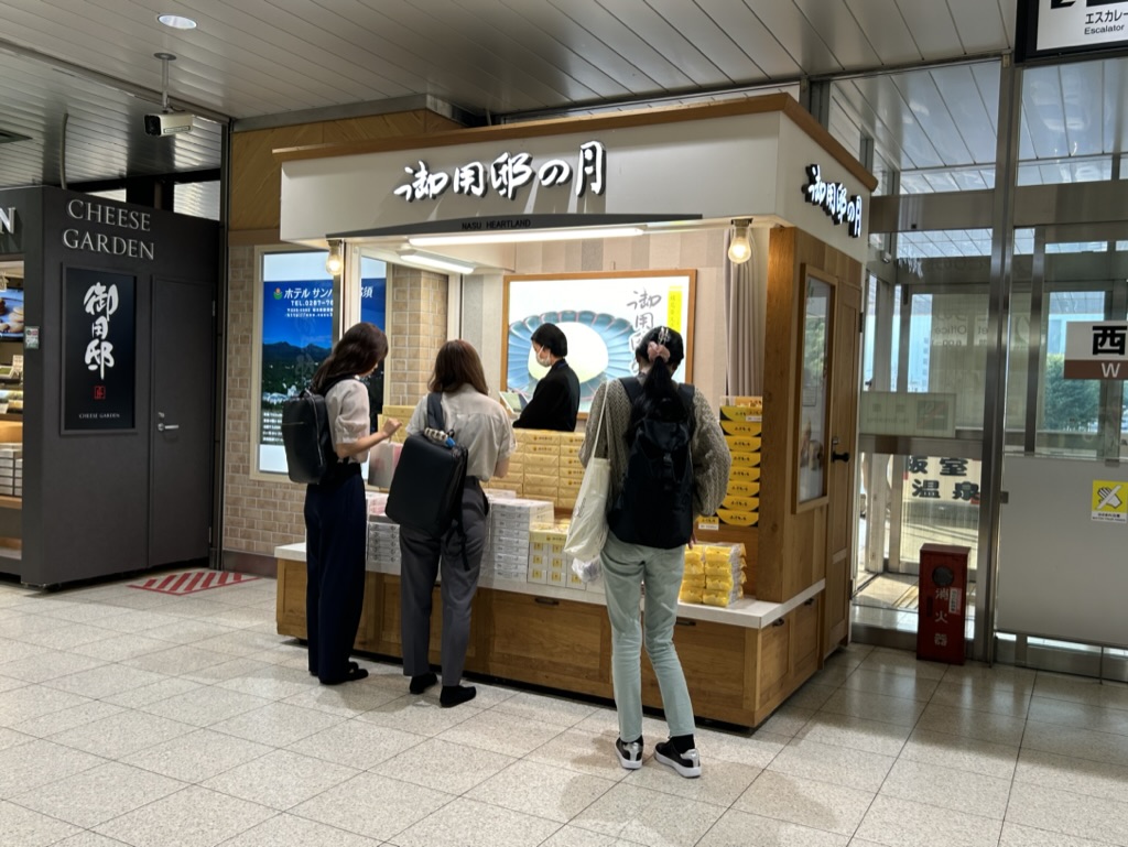 那須塩原駅の構内には、「御用邸の月」や「チーズガーデン」など、人気のお土産を取り扱うショップが揃っています。