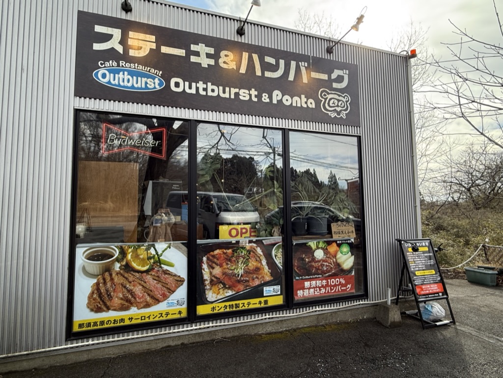那須サファリパークまで車で約3分という好立地にあるそのお店の名前は、「Outburst & Ponta(アウトバースト&ポンタ)」。