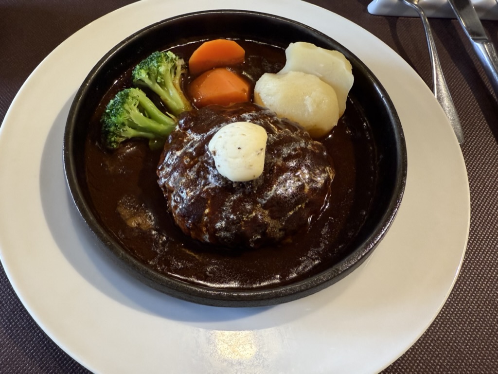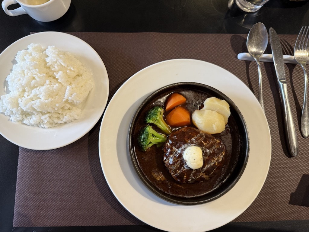 煮込みハンバーグなので熱々で、体の芯からぽかぽか温まります。