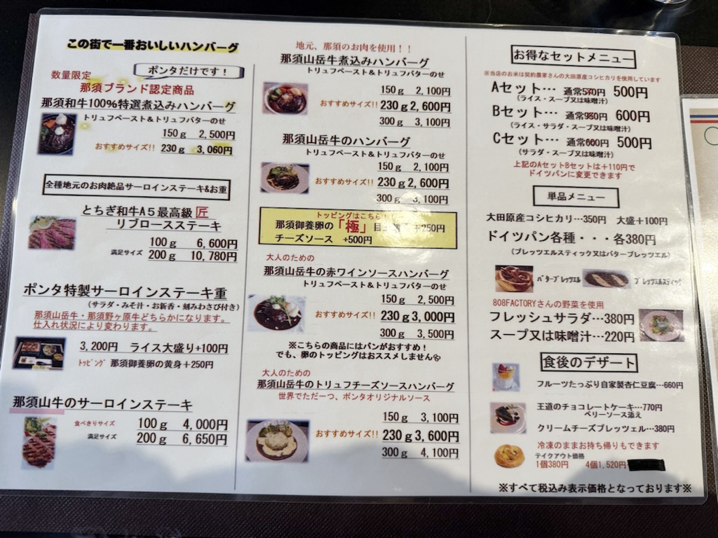那須ブランドにも認定されている一品で、旨味がぎゅっと詰まったハンバーグに、トリュフの香りが贅沢に広がります。